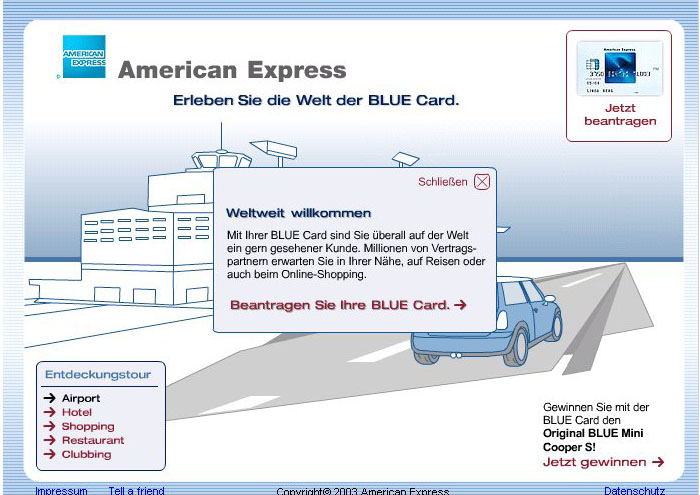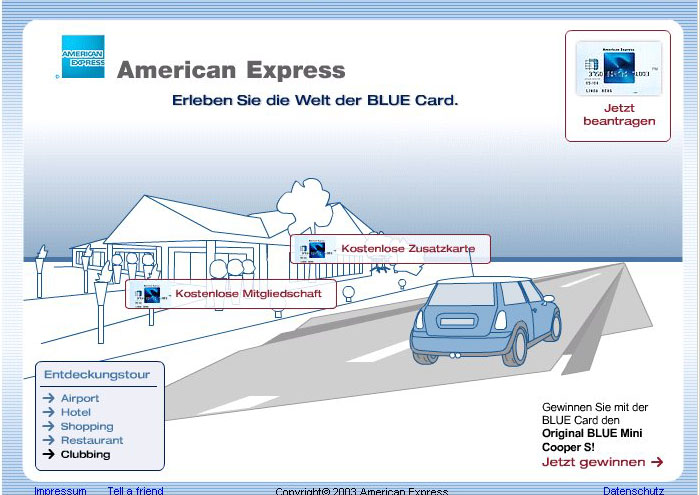 Im Stile eines Abenteuer-Spiels konnte der User verschiedene Stationen ansteuern und in kleinen Story-Bites die Vorteile der BLUE-Card erfahren.