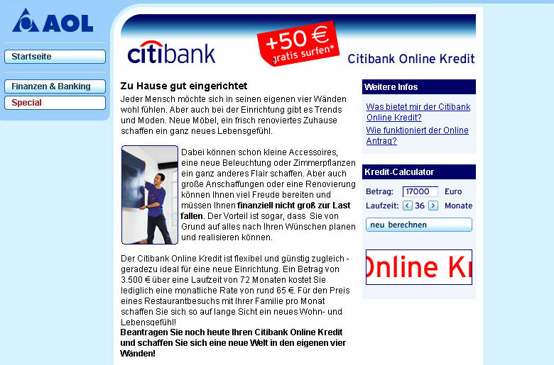 Chancen nutzen, wenn sie sich bieten - alles möglich mit dem Citibank Online Kredit. Und als Bedienungsanleitung schaltete Citibank ein Kredit-Special bei AOL.