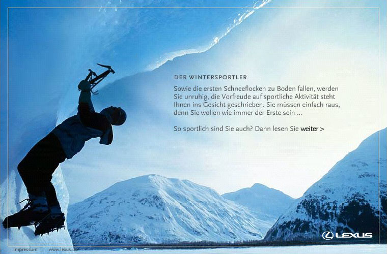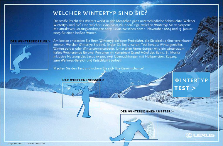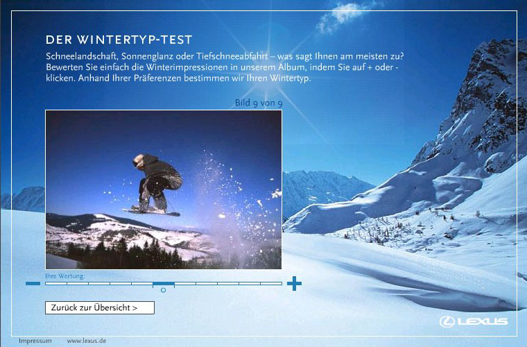 Die Website zur „December to Remember“-Aktion von Lexus hilft allen Besuchern, den ganz persönlichen Winter- und Lexus-Typ zu entdecken.