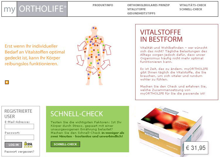 Ein Nährstoff-Finder und umfassende Informationen zur orthomolekularen Medizin eröffneten dem User dem Web zum individuellen Vitalstoff-Paket.